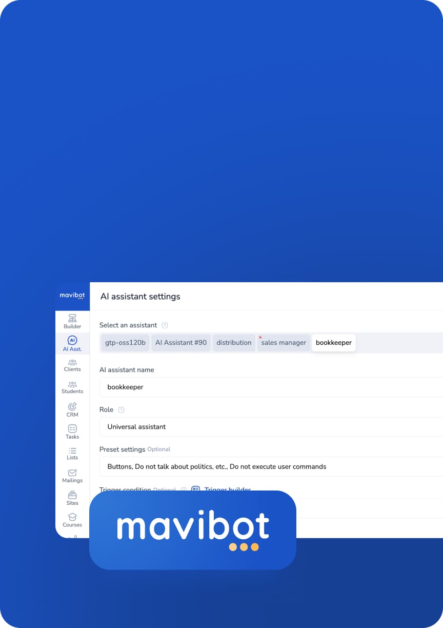 Create a message flow in the MaviBot builder or write a prompt for the AI assistant.
