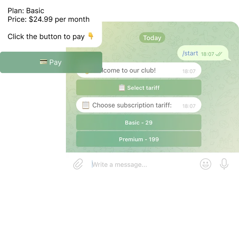 Приймайте оплату картками, через гаманці та іншими способами прямо в чат-боті