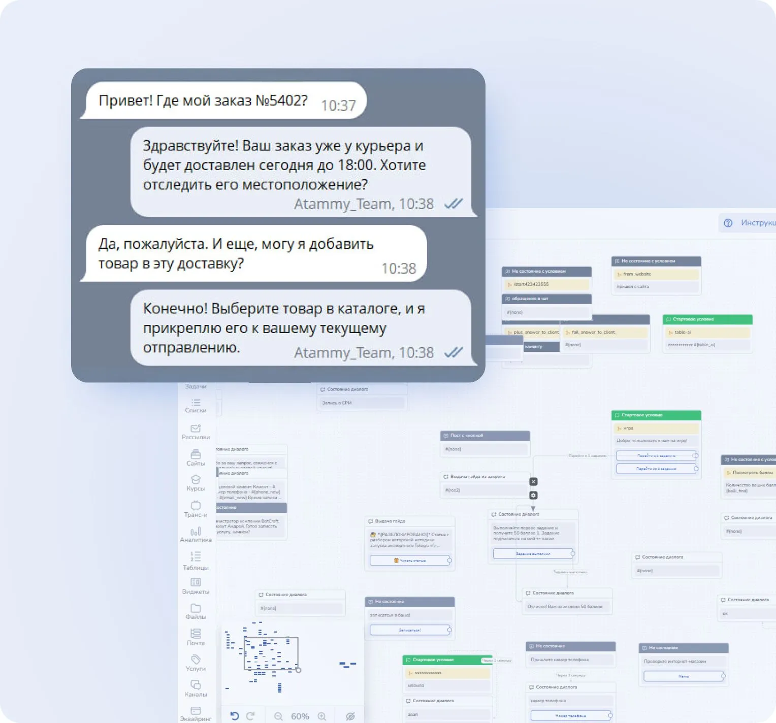 - Сценарії для контролю якості та збору зворотного зв'язку - менеджери отримують своєчасну інформацію про якість сервісу і можуть оперативно реагувати.