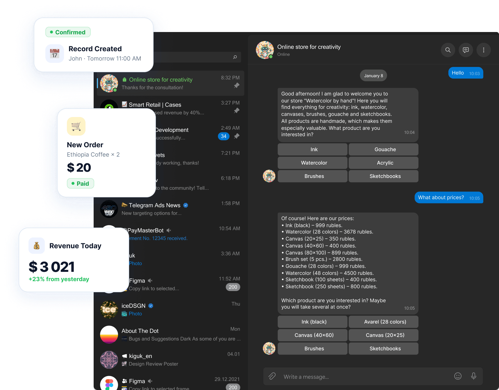 Усе для продажів в одній системі: створення чат-ботів без коду, створення сайтів і курсів, CRM, прийом оплат і розсилки